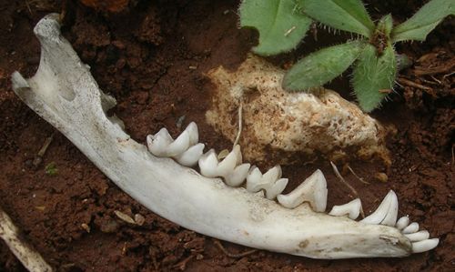 With temperatures barely above freezing and mostly cloudy skies, it was a chilly survey for our three volunteers this time. While we rarely see mammals, there are sometimes clues to their presence. The lower jaw (mandible) of an Opossum was one such find. As a marsupial, its teeth differ significantly from placental carnivores; for instance, foxes, raccoons and skunks have only 3 incisors where this jaw has 4. The bone is from an animal that died when it was about 4 months old, deduced by the presence of 5 premolars+molars. A 5-month-old would have 7 while a 3-month-old would have only 2.
